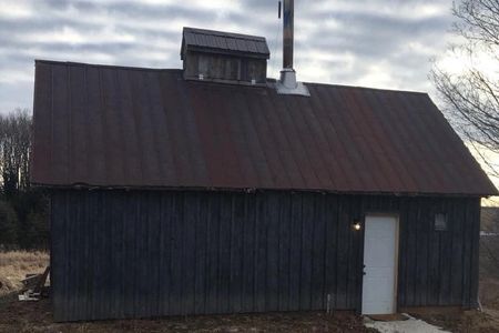 During the summer and fall of 2015 we renovated an old barn on our property to use as our sugar shack (pictured below). We now have 250-300 taps, which yield around 75 gallons of syrup.